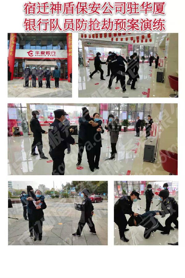 11月18日,宿遷市神盾保安有限公司駐華廈銀行保安分隊(duì)組織開展防搶劫應(yīng)急預(yù)案演練。開展經(jīng)常性應(yīng)急處突演練是做好銀行安全保衛(wèi)工作的基本要求,也是加強(qiáng)安全防范工作的有效手段。通過現(xiàn)場模擬實(shí)戰(zhàn)演練,進(jìn)一步提高了保安人員熟練掌握處置突發(fā)事件的工作流程和防護(hù)器材的使用方法,錘煉了保安人員應(yīng)急處突時(shí)臨危不懼、靈活應(yīng)對、規(guī)范處置的專業(yè)技能。