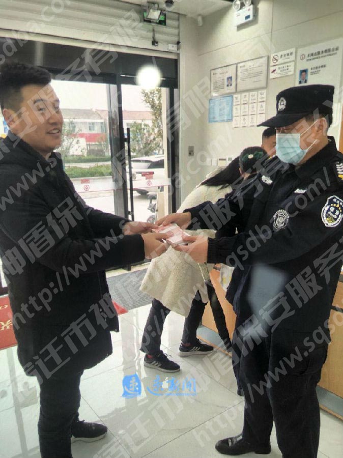 發(fā)布時間:2020-11-27 | 來源:宿遷市神盾保安服務(wù)有限公司 | 閱讀:1279次(速新聞記者 孫軍賢 通訊員 李霄 )如果在路邊撿到萬元現(xiàn)金,你會怎么做?11月26日上午,記者從宿遷市神盾保安服務(wù)有限公司獲悉,該公司保安劉秀林在路邊撿到2萬元現(xiàn)金后,沒有絲毫遲疑便將現(xiàn)金交到銀行,后查找核實后及時歸還失主。