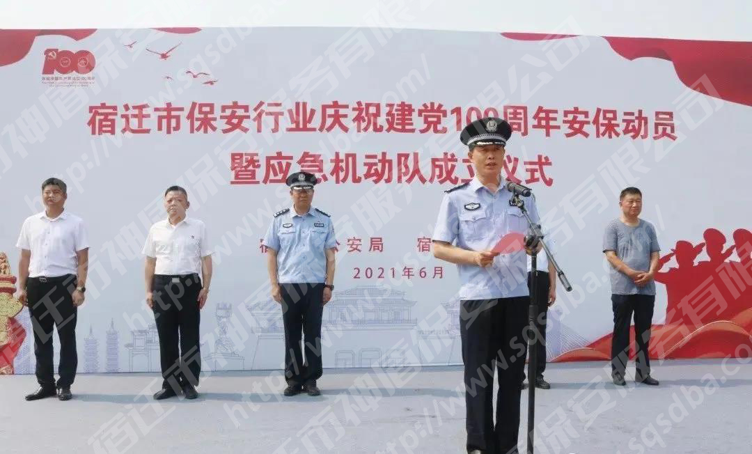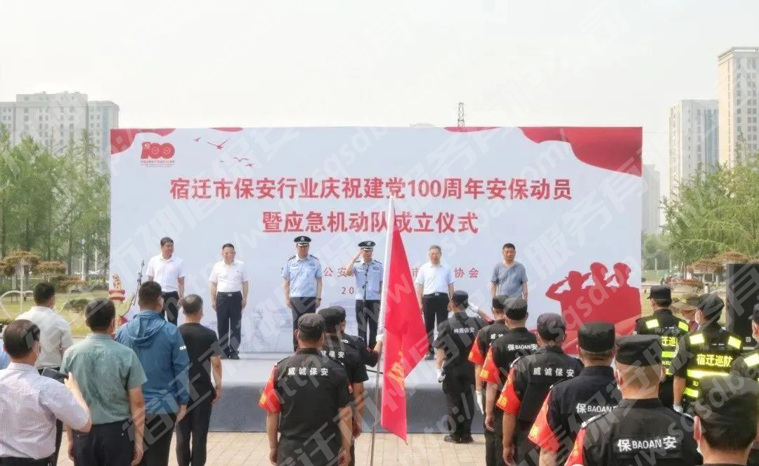 2021年6月11日上午,宿遷市保安行業(yè)慶祝建黨100周年安保動(dòng)員暨應(yīng)急機(jī)動(dòng)隊(duì)成立儀式在宿城區(qū)人民廣場(chǎng)成功舉辦。