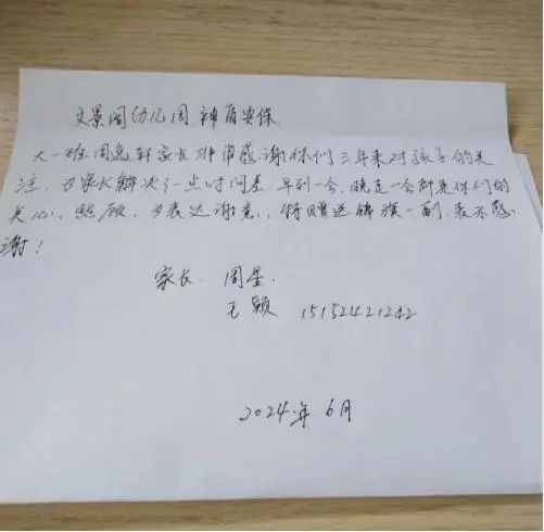 6月23日上午9點(diǎn)左右,宿遷市神盾保安服務(wù)有限公司駐宿遷市蘇宿工業(yè)園區(qū)·文景閣幼兒園保安班長(zhǎng)王懷喜在崗執(zhí)勤期間,文景閣幼兒園大一班周逸軒小朋友家長(zhǎng)專(zhuān)程到校致謝,表示孩子在校三年來(lái),感謝三名駐守文景閣幼兒園的保安員對(duì)孩子精心呵護(hù)、耐心照顧。家長(zhǎng)們滿(mǎn)懷感恩之心,將錦旗和感謝信送到幼兒園,借此表達(dá)對(duì)保安員的衷心感謝。