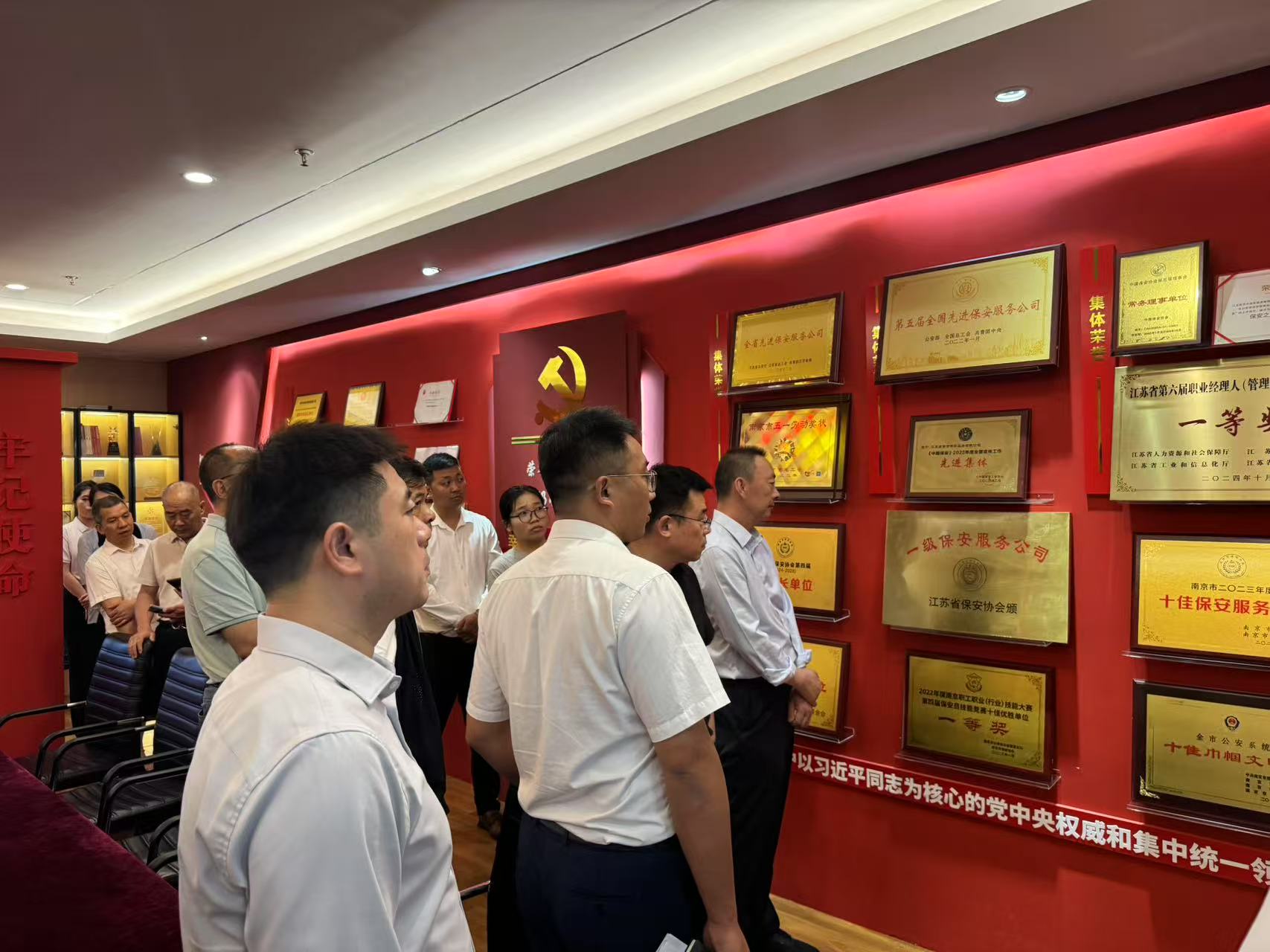 6月27日,中共宿遷市神盾保安服務(wù)有限公司黨委書記朱雷同志代表神盾保安公司和市保安協(xié)會領(lǐng)導(dǎo)到南京市參加江蘇省保安協(xié)會舉辦的“黨建引領(lǐng)保安服務(wù)業(yè)高質(zhì)量發(fā)展”座談會,會議首先參觀了南京市保黨建園地、企業(yè)文化走廊和指揮調(diào)度中心,隨后組織16家企業(yè)進(jìn)行座談活動,宿遷神盾公司黨委書記朱雷代表宿遷市圍繞會議主題作交流發(fā)言。